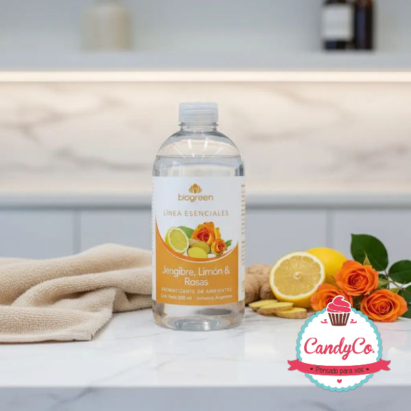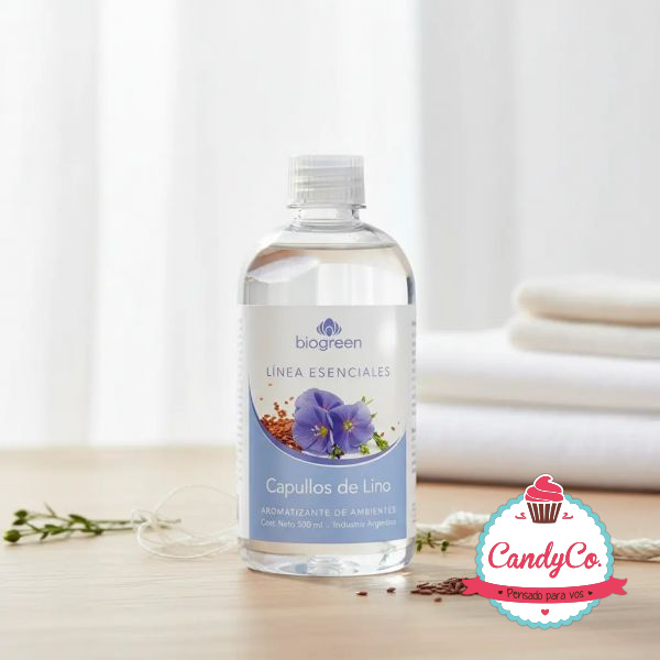 Aromatizador Perfume Biogreen de 500ml. Puede utilizarse en ambientes, prendas, cortinas, tapizados, ropa de cama, placares, sillones, automotores, etc.