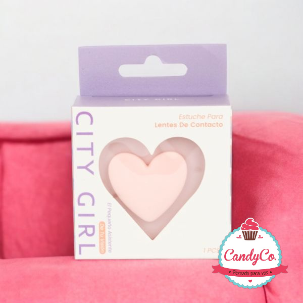 Estuche para Lentes de Contacto Pastel con Espejo y Corazón de Silicona en Caja City Girl