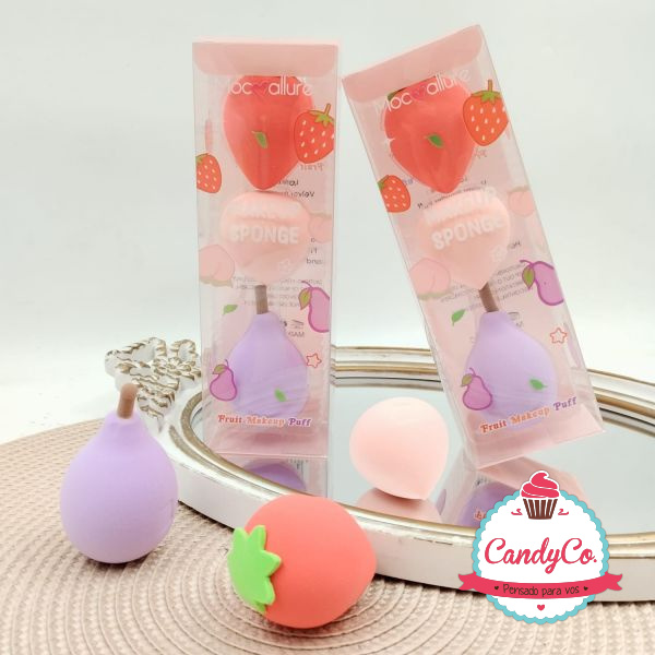 Set de Esponjas para Maquillaje X3 con Forma de Frutas en Caja Makeup Sponge Moc Allure