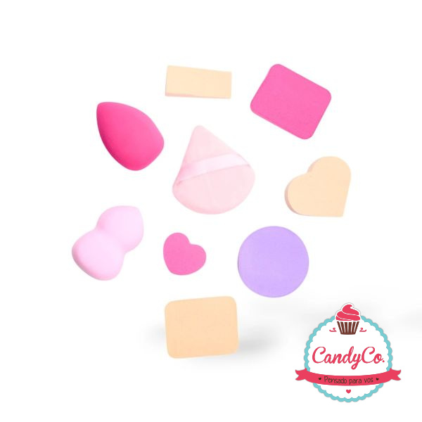Set de Esponjas para Maquillaje, Pads con Forma de Gota, Botella, Corazones, Círculos, Rectángulo, Triángulo X8 en sobre Mely Beauty