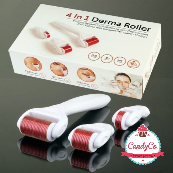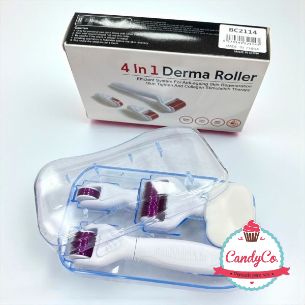 Set de Rodillos Faciales con Microagujas 4 en 1 con Estuche en Caja 4 In 1 Derma Roller
