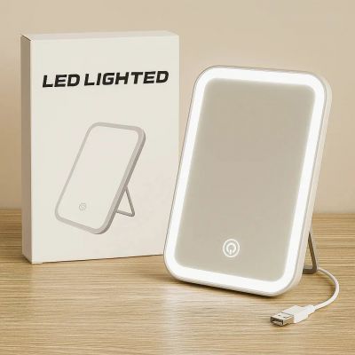 Espejo Rectangular con Luz Led Recargable y Base de Plástico