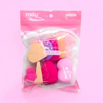 Set de Esponjas para Maquillaje, Pads con Forma de Gota, Botella, Corazones, Círculos, Rectángulo, Triángulo X8 en sobre Mely Beauty