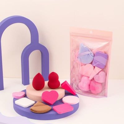 Set de Esponjas para Maquillaje X9 Piezas con Esponja Gota, Botella, Corazones, Triángulo, Pads Rectangulares, Redondo, Triangular en sobre Make Up Naez