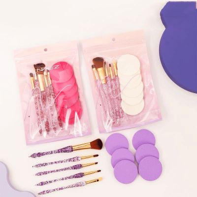 Set de Brochas con Brillo X5 y Esponjas X6 para Maquillaje en Bolsa Make Up Naez