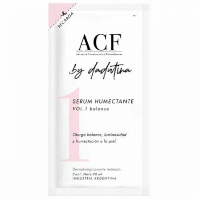 Menos % de Deshechos de Material de Empaque Al Realizar la Recarga en Su Envase Original. Serum Exclusivo de Acf Formulado con Colaboración de @Soydadatina. Otorga Balance y Humectación a la Piel, Reduciendo la Inflamación Y/O Enrojecimiento de la Misma. Ayuda a Controlar El Acné y Brinda Luminosidad. Principios Activos Niacinamida 10%: Una Vitamina (B3) Que Ayuda a Minimizar los Poros Dilatados, Mejora El Tono de la Piel, Atenúa Rojeces, Suaviza Arrugas y Líneas de Expresión y Le Da Iluminación a la Piel. Oligoelementos de Zinc: Antioxidante, Calmante de la Piel. Regula El Sebo y Controla la Aparición de Acné. Ácido Hialurónico: Reduce la Apariencia de Arrugas Finas, Humecta la Piel y Suaviza Su Textura. Glicerina: Humectante, Atrae la Humedad Externa y Previene la Resequedad de la Piel Protegiéndola de Daños Externos. Contenido Neto: 30 Ml Clínica y Dermatológicamente Testeado Modo de Uso: Antes de Introducir El Contenido del Pouch en El Envase, Recomendamos Lavarlo Bien con Abundante Agua y Jabón o Cualquier Solución a Base de Alcohol Al 70%, Dejar Secar y Luego Rellenar! Colocar 3 a 4 Gotas en Rostro y Cuello Después de la Limpieza y Presionar Suavemente con las Manos para Que Se Absorba. Continuar la Rutina Aplicando Una Crema de Día/Noche. Fórmula: Water (Aqua), Niacinamide, Glycerin, Propylene Glycol, Phenoxyethanol, Zinc Acetylmethionate, Hydroxyethylcellulose, Sodium Hyaluronate, Ethylhexylglycerin, Disodium Edta.